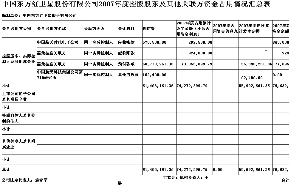 1、中國東方紅股份有限公司2007年度控股股東及其他關(guān)聯(lián)方資金占用情況匯總表